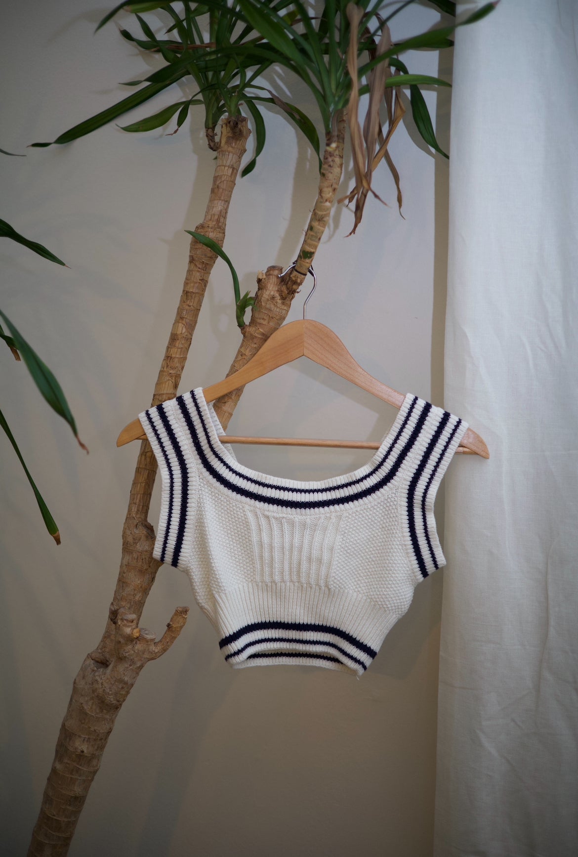 Cider crop knit tank top. Blue & white.