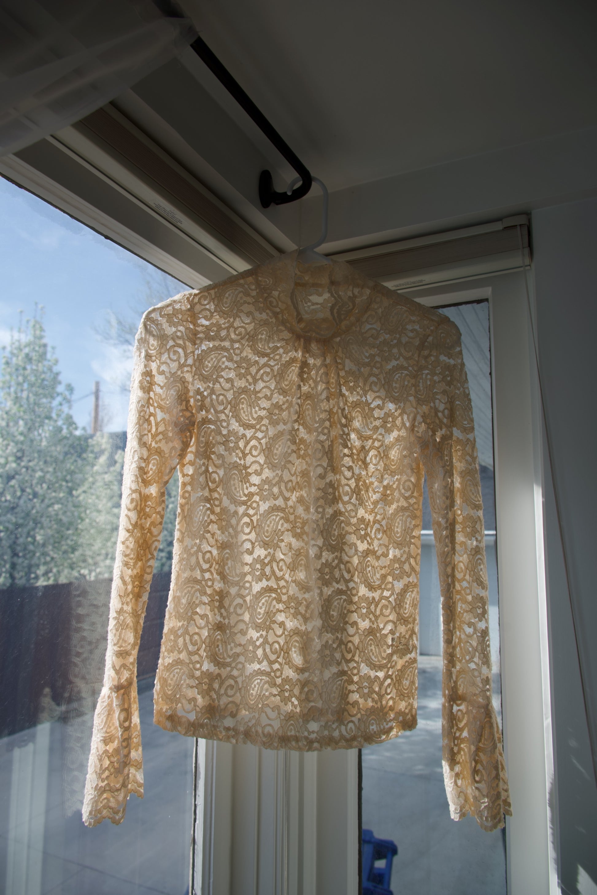 A cream/beige lace whimsical women's long sleeve. Perfect for spring layering.