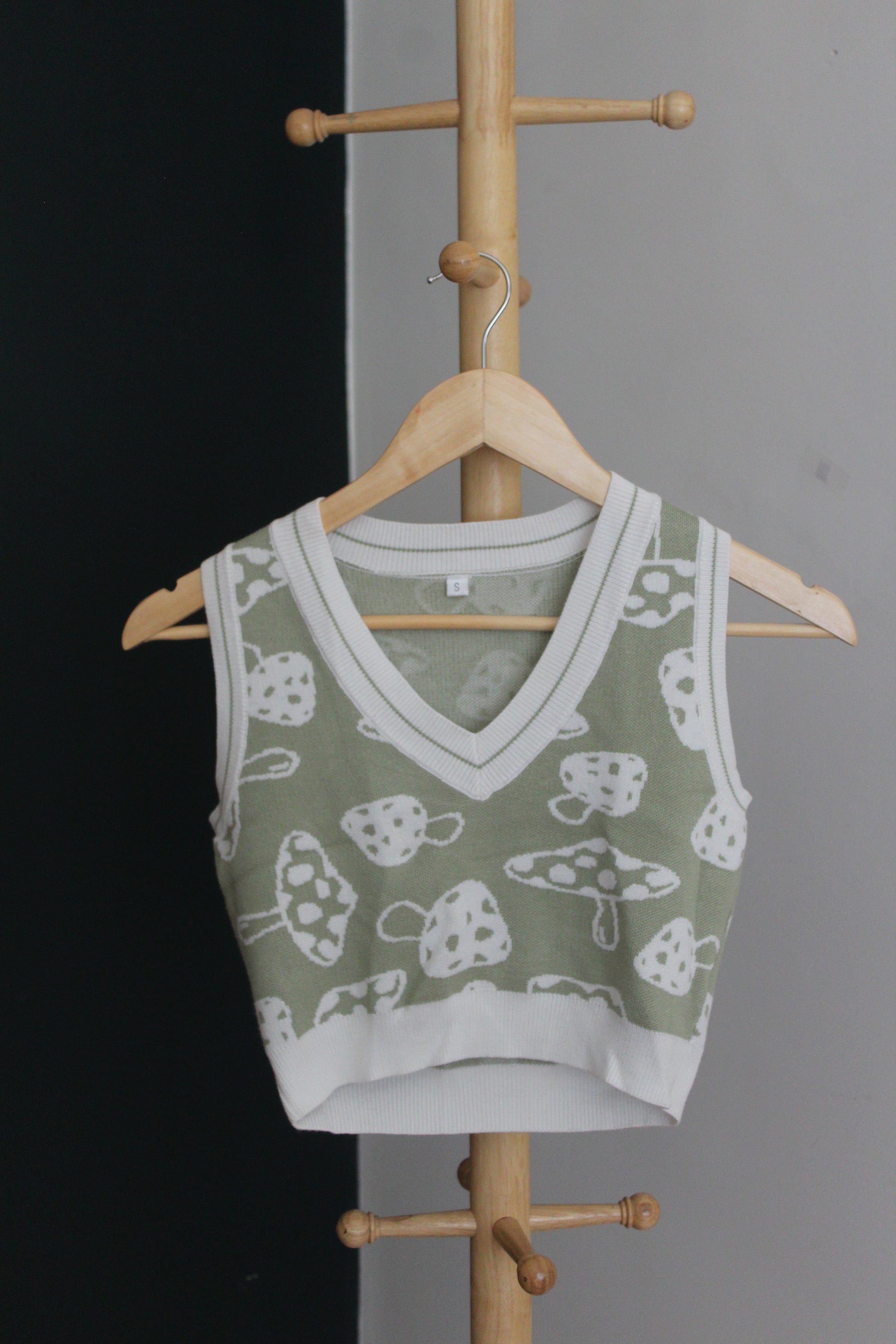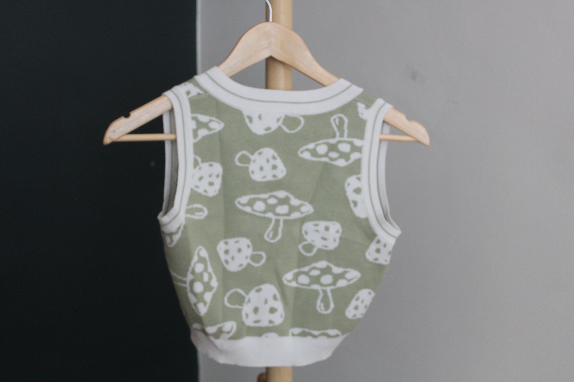 Green mushroom knit tank top.
